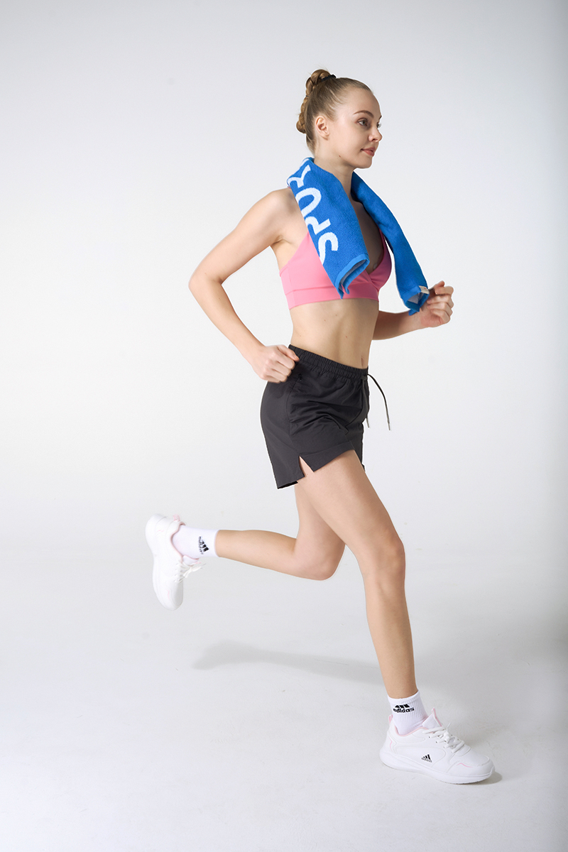 The material of sports bra is 78% nylon,22% elastic 230 gram per sqaure,and the material of the shorts is 100% polyamid poplin,water reflent,120 gram per square meter,top quality